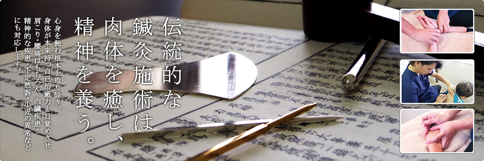 当院では中医学を治療のベースに据え、さらに日本独自に発展してきた鍼灸技術を織り交ぜた施術を行っております。